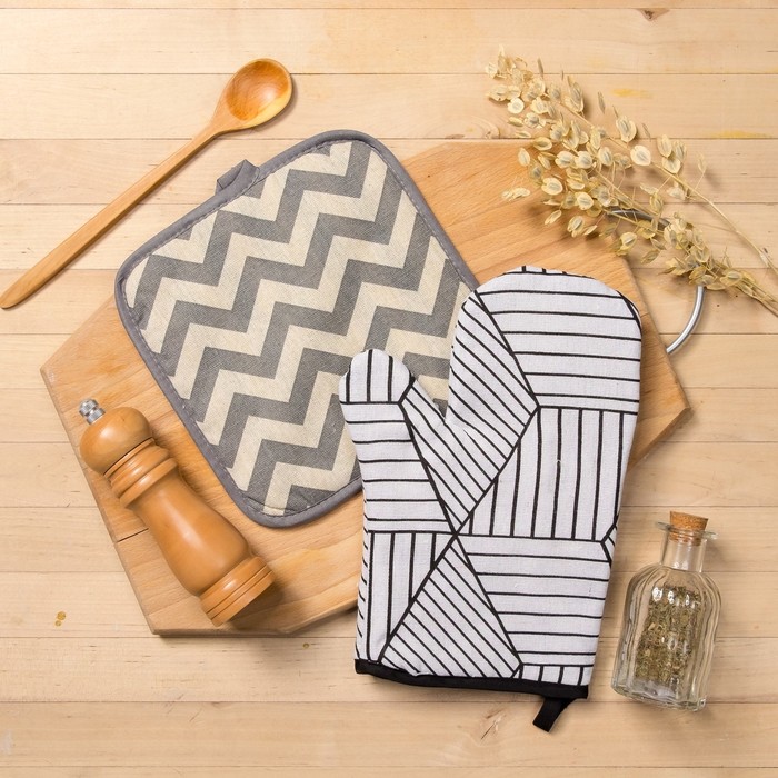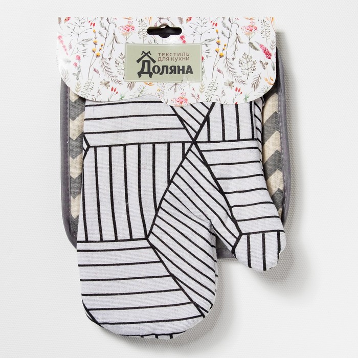 Кухонный набор (2 предмета) Доляна «Тренд», прихватка 17×17 см, рукавица 26×16 см, 100% п/э 3 фото