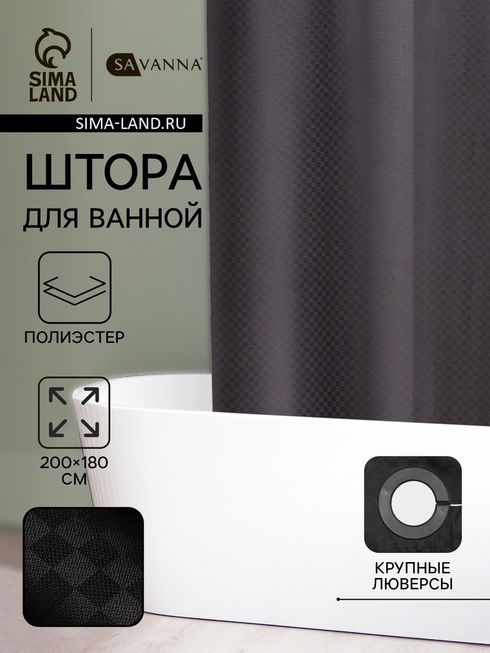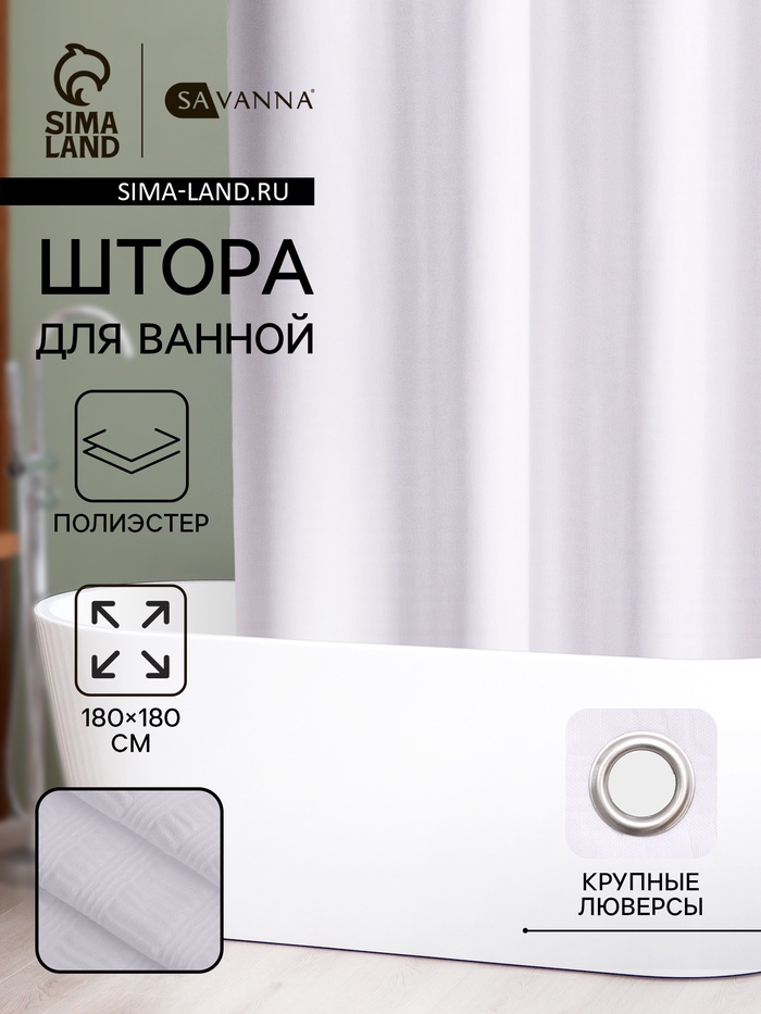 Штора для ванной SAVANNA «Сохо», 180×180 см, полиэстер 7 фото