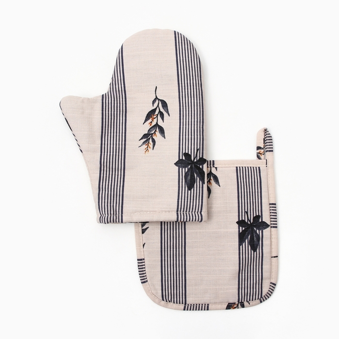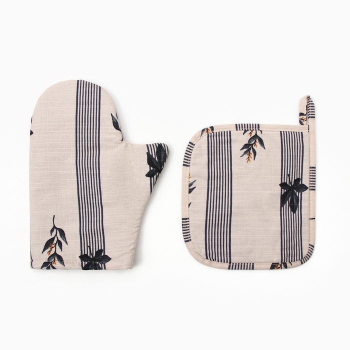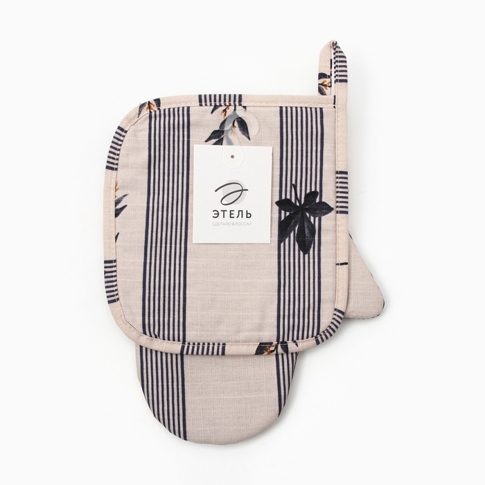 Набор кухонный «Этель» Home, цвет молочный, варежка-прихватка 18×29 см, прихватка 19×19 см 6 фото