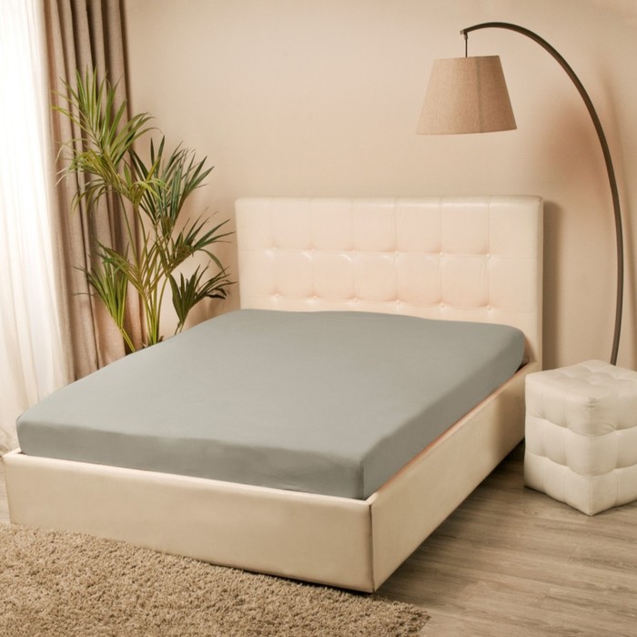 Простыня на резинке 1.5-спальная KUPU-KUPU, 160×200+20 см, серая, трикотаж 4 фото