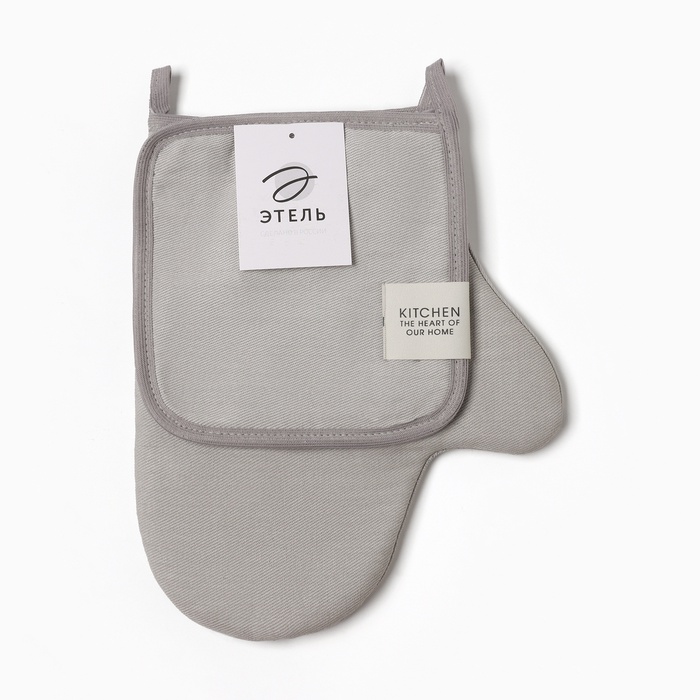 Набор кухонный «Этель» Home, светло-серый, варежка-прихватка 18×29 см, прихватка 19×19 см 6 фото