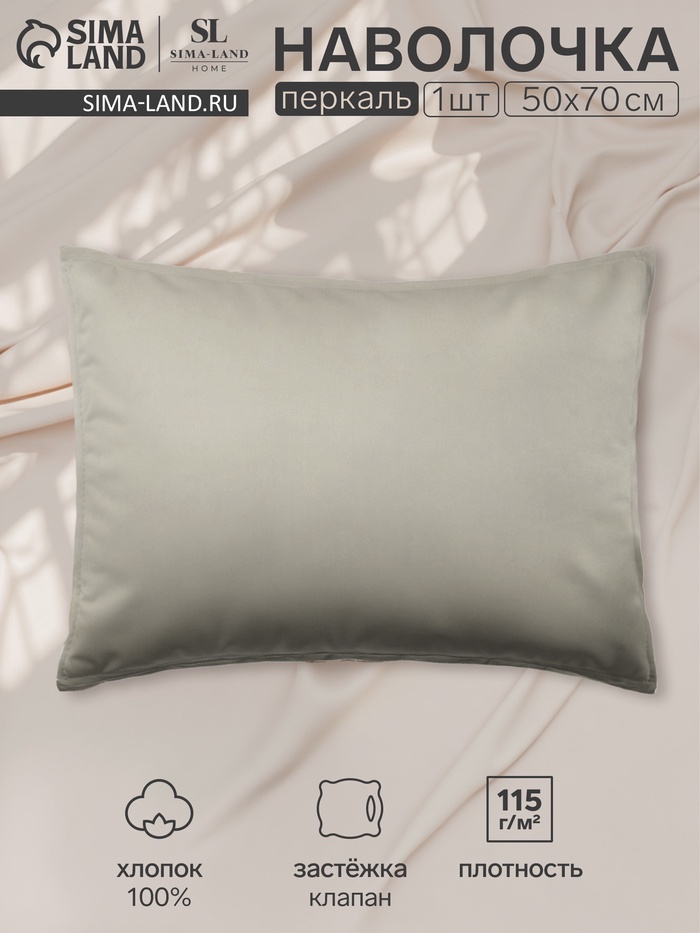 Наволочка SL Home Percale 300ТС, 50×70+3 см, серая, перкаль, хлопок 100% 10 фото