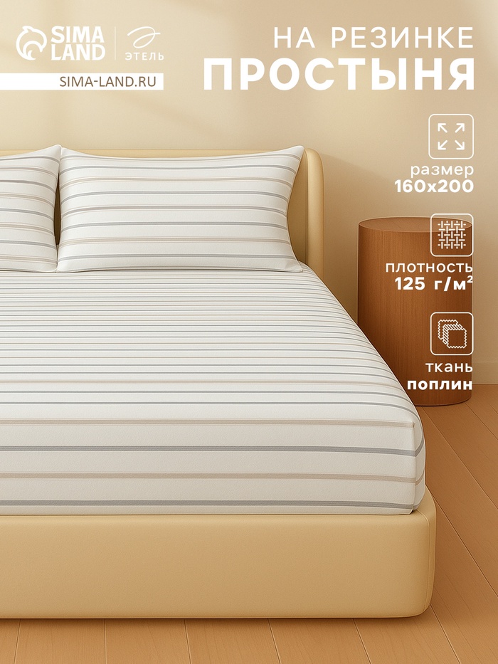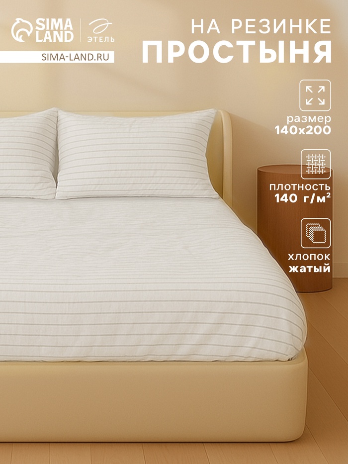 Простыня на резинке 1.5-спальная SL Home, 140×200+30 см, серая, перкаль 10 фото