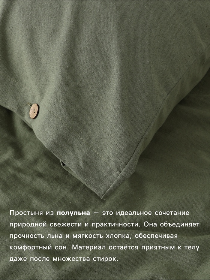 Простыня 1.5-спальная SL Home Percale 300ТС, 160×235 см, олива, хлопок 100% 10 фото