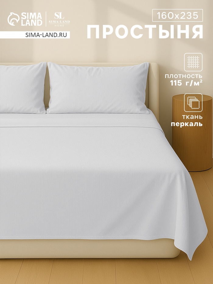 Простыня 1.5-спальная SL Home Percale 300ТС, 160×235 см, серая, хлопок 100% 10 фото