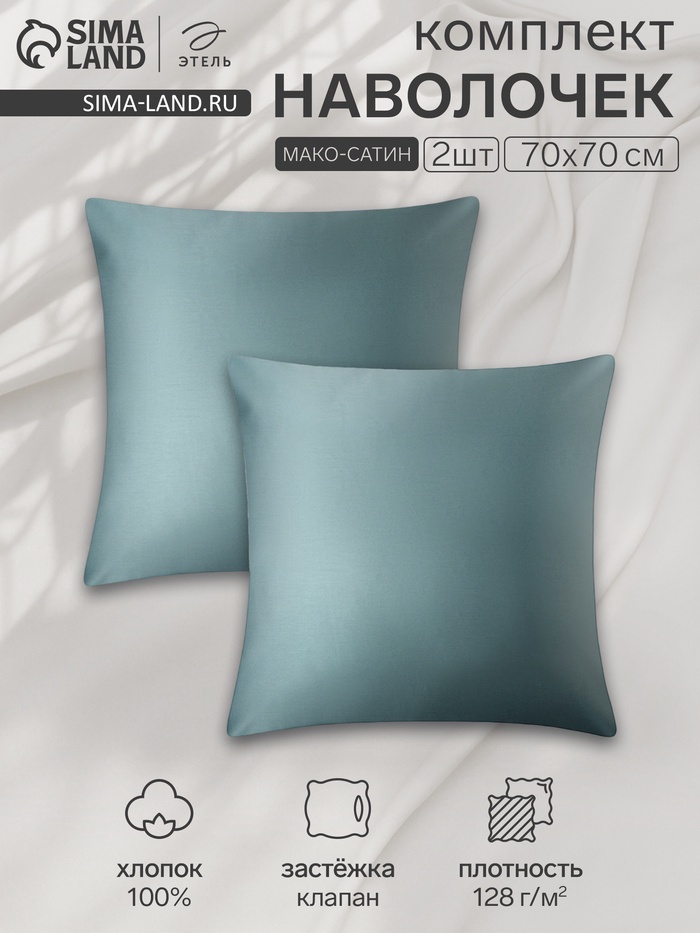 Комплект наволочек «Этель», 70×70 см, 2 шт., изумруд, мако-сатин, хлопок 100% 7 фото
