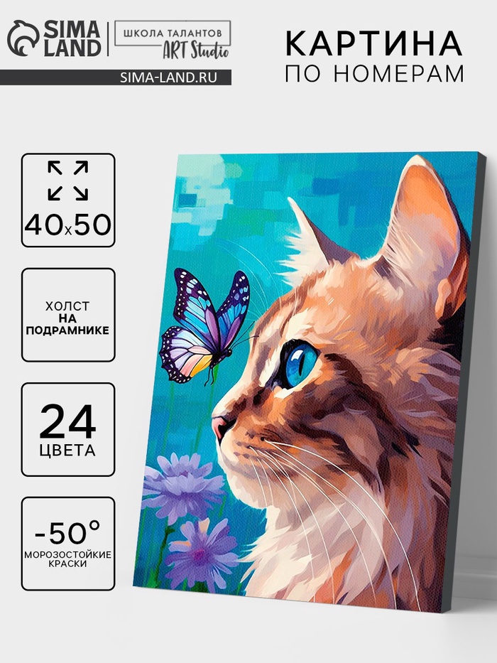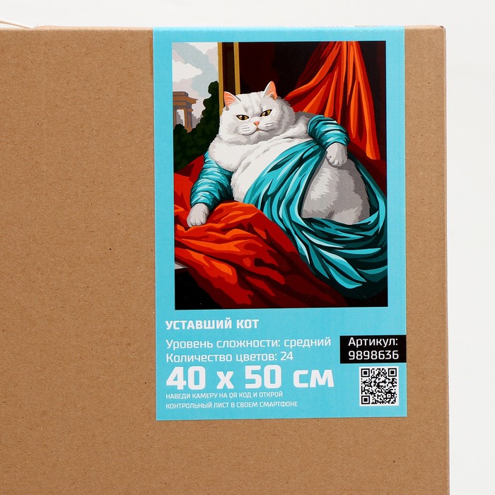 Картина по номерам на холсте с подрамником «Уставший кот» 40×50 см 5 фото