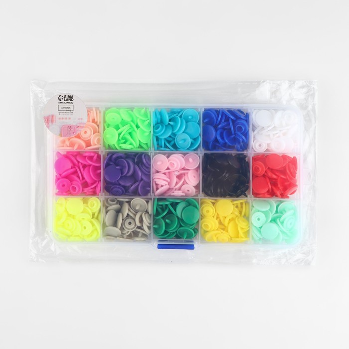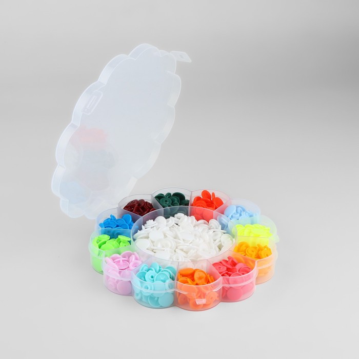 Кнопки пластиковые, d=12 мм, 240 шт., в органайзере, разноцветные 8 фото