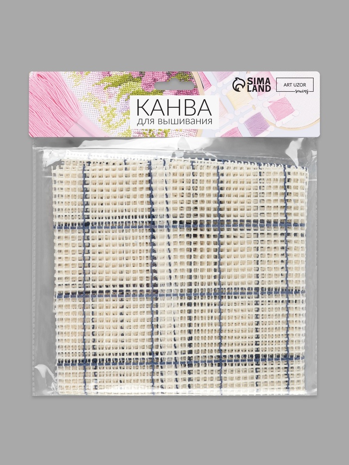 Канва страмин для вышивания, в клетку, №5, 48×48 см, белая, синяя 4 фото