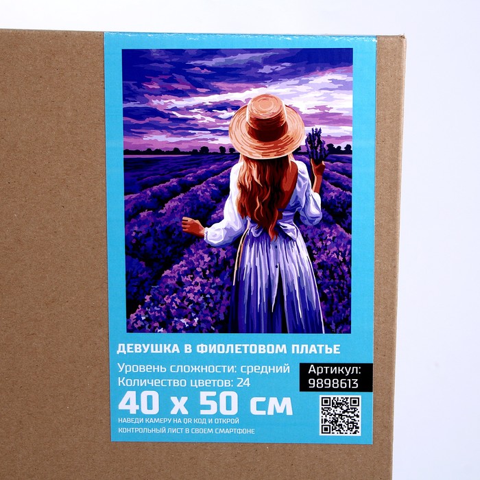 Картина по номерам на холсте с подрамником «Девушка в фиолетовом платье» 40×50 см 5 фото