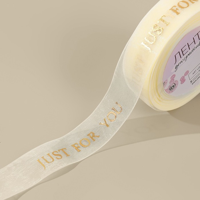 Лента капроновая с тиснением Just for you, 25 мм, 23±1 м, цвет бежевый, золотой 3 фото