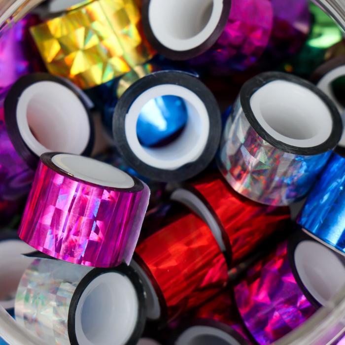 Клейкая лента пластик в банке «Голография», набор 40 шт., 1.2 см×2.8 м, 7.5×8.5×8.5 см, МИКС 4 фото