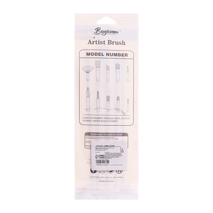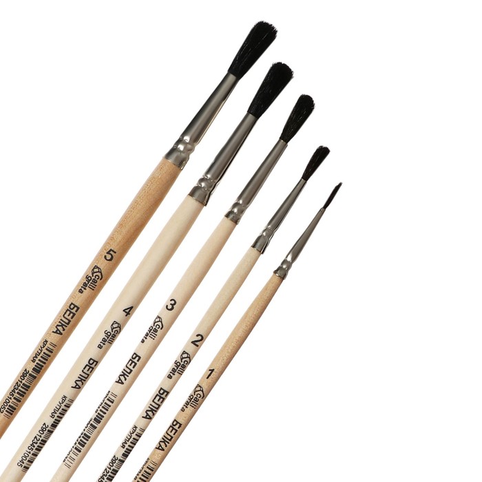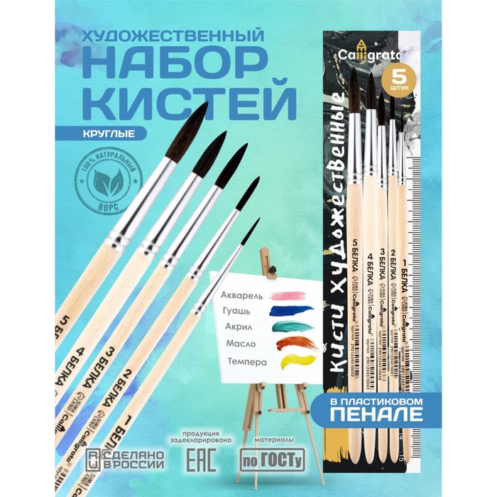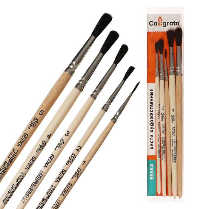 Набор кистей для рисования, белка, 5 штук: №: 1, 2, 3, 4, 5, Calligrata, круглые, деревянная ручка, в пенале 6 фото