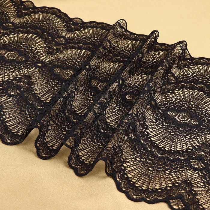 Кружевная эластичная ткань, 240 мм, 2.7±0.5 м, чёрная №8 4 фото