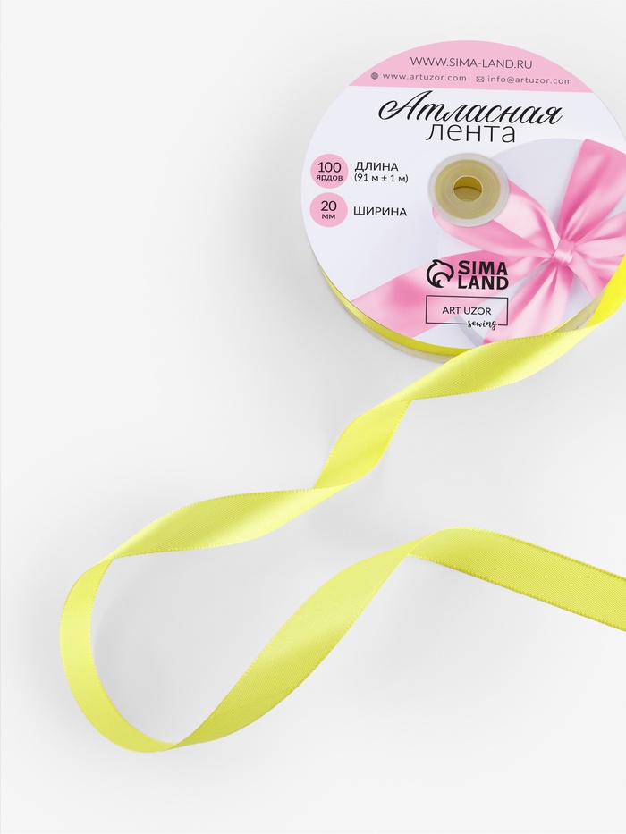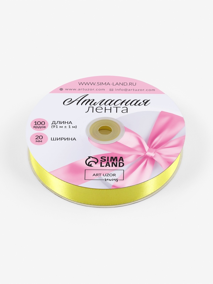 Лента атласная, 20 мм, 91±1 м, жёлтая №15 5 фото