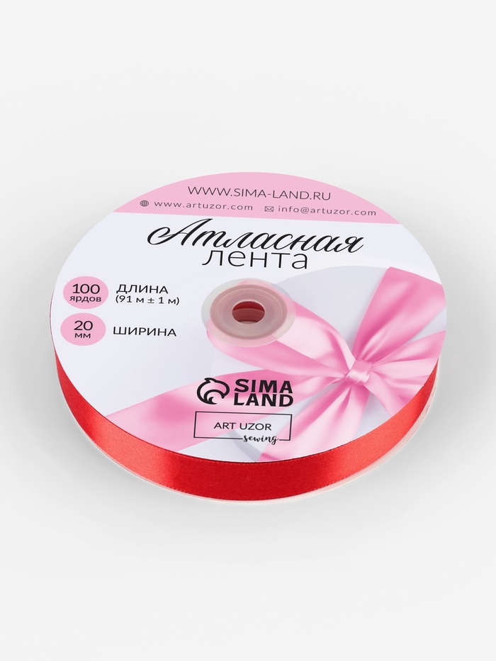 Лента атласная, 20 мм, 91±1 м, красная №26 5 фото