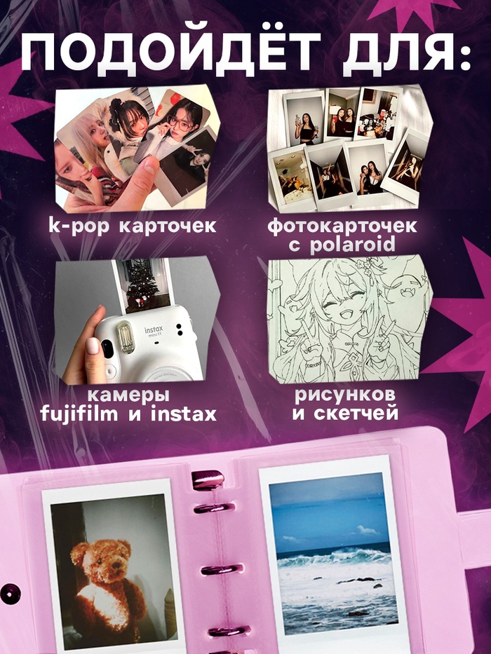 Альбом - биндер для карт, 25 страниц, на 50 карточек, голографические наклейки 5 фото