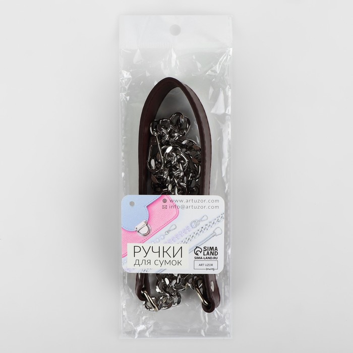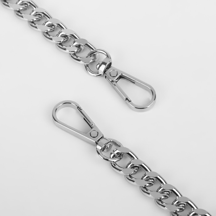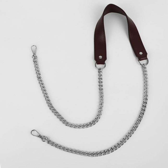 Ручка для сумки, с плоскими цепочками и карабинами, 120×3 см, цвет коричневый, серебряный 6 фото