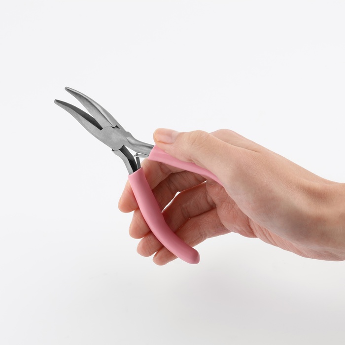 Тонкогубцы изогнутые, для рукоделия, 13×6.5 см, цвет серебряный/розовый 9 фото
