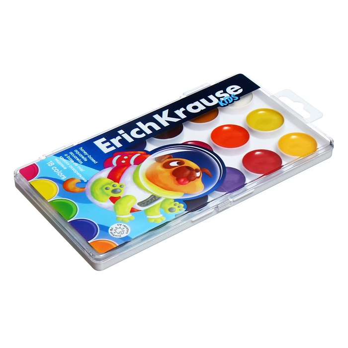 Акварель 18 цветов, ErichKrause Kids Space Animals, медовая, с УФ защитой яркости, пластиковая коробка, европодвес 5 фото