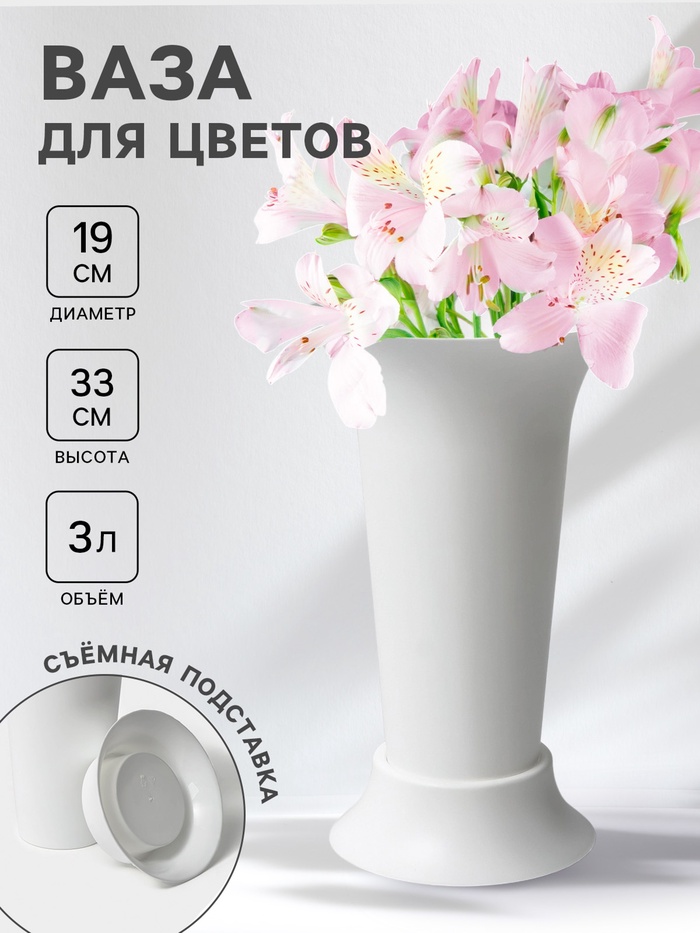 Ваза для цветов под срезку Альтернатива, 3 л, пластиковая, белая 7 фото