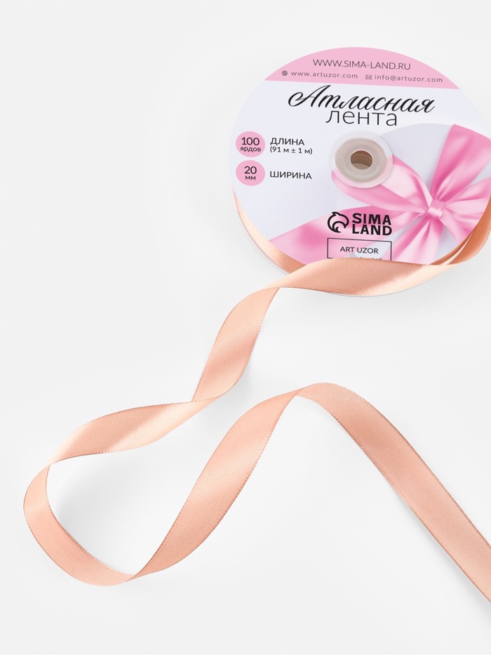 Лента атласная, 20 мм, 91±1 м, цвет розовое золото №146 5 фото