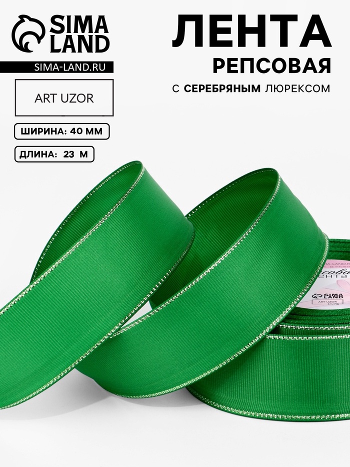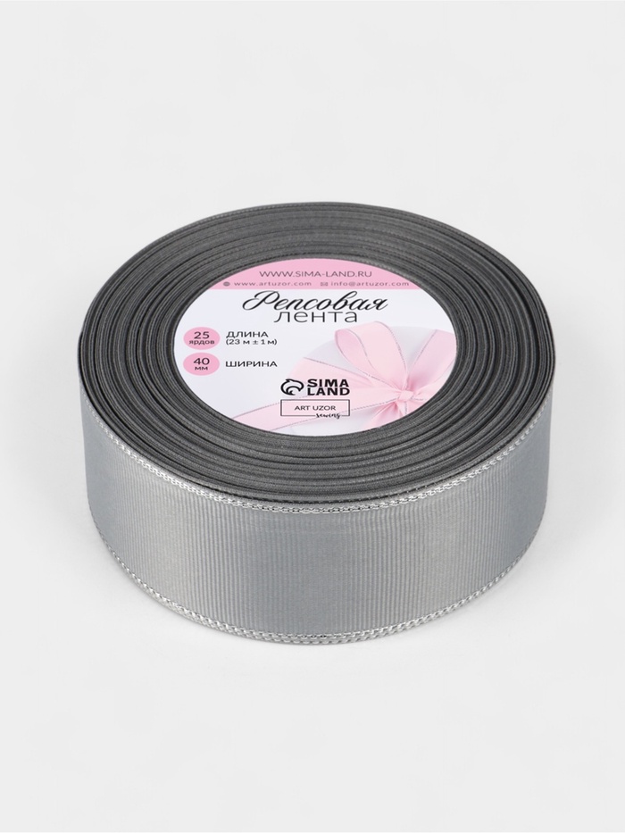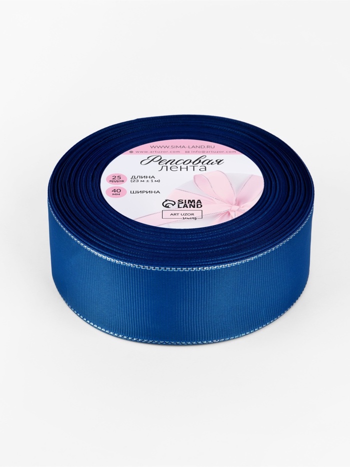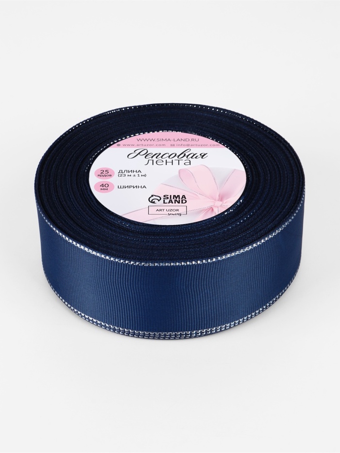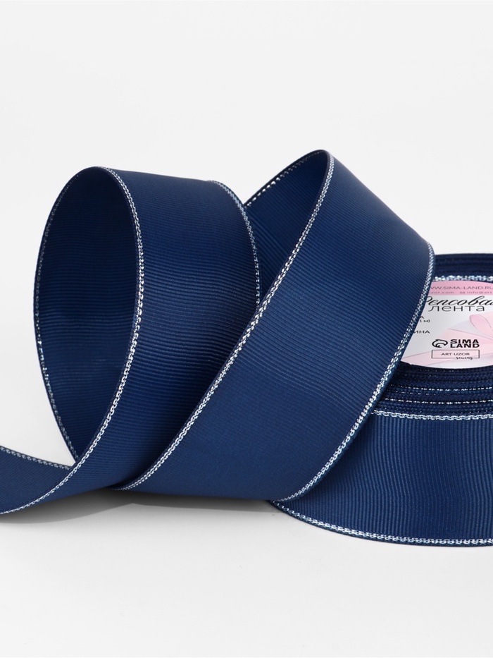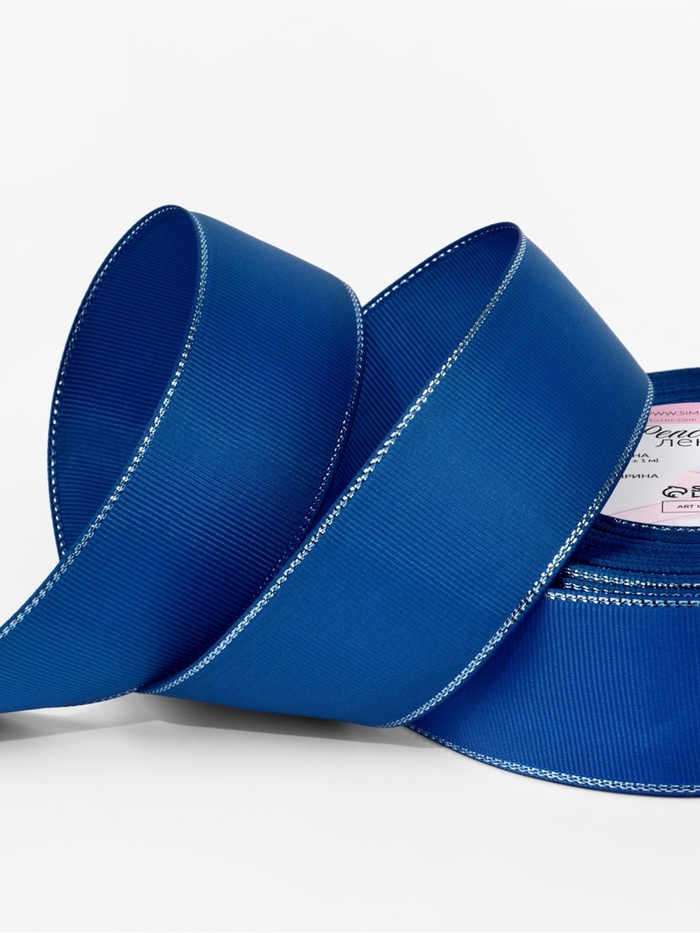 Лента репсовая, с серебряным люрексом, 40 мм, 23±1 м, синяя №40 3 фото