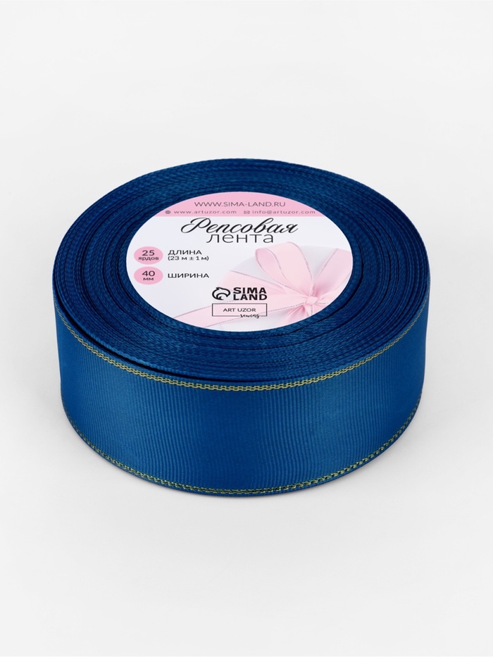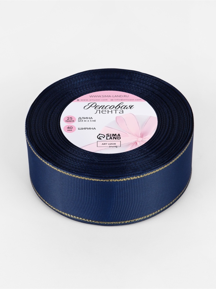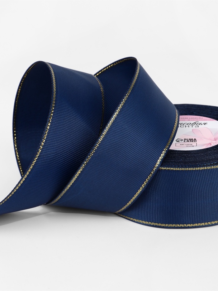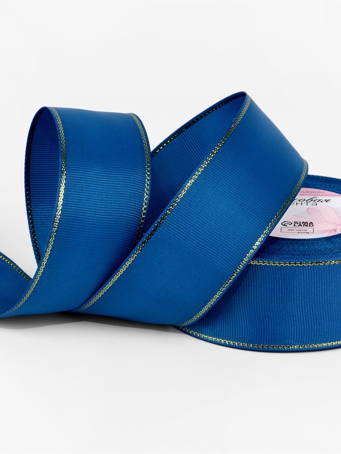 Лента репсовая, с золотым люрексом, 40 мм, 23±1 м, синяя №040 3 фото
