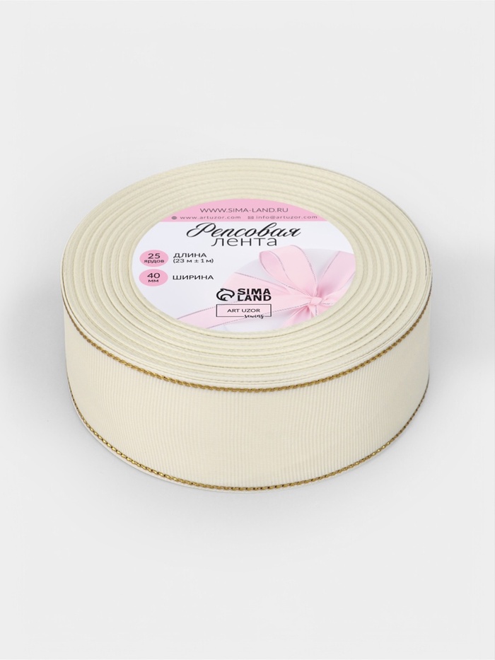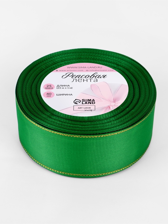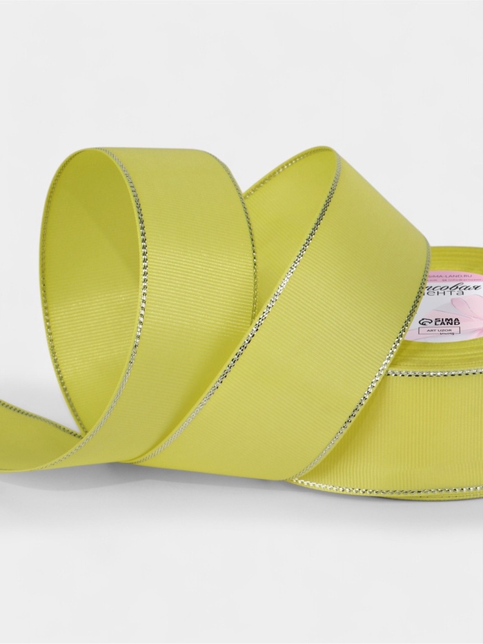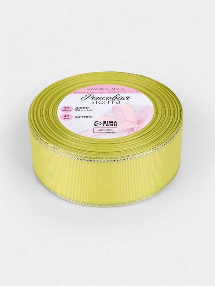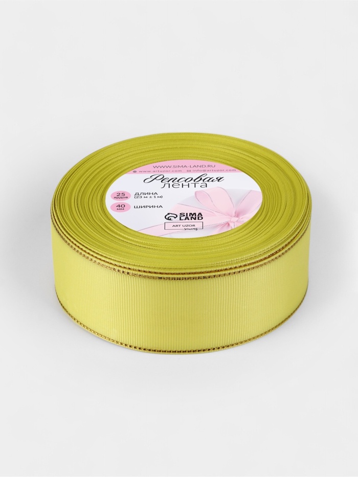 Лента репсовая, с золотым люрексом, 40 мм, 23±1 м, жёлтая 3 фото