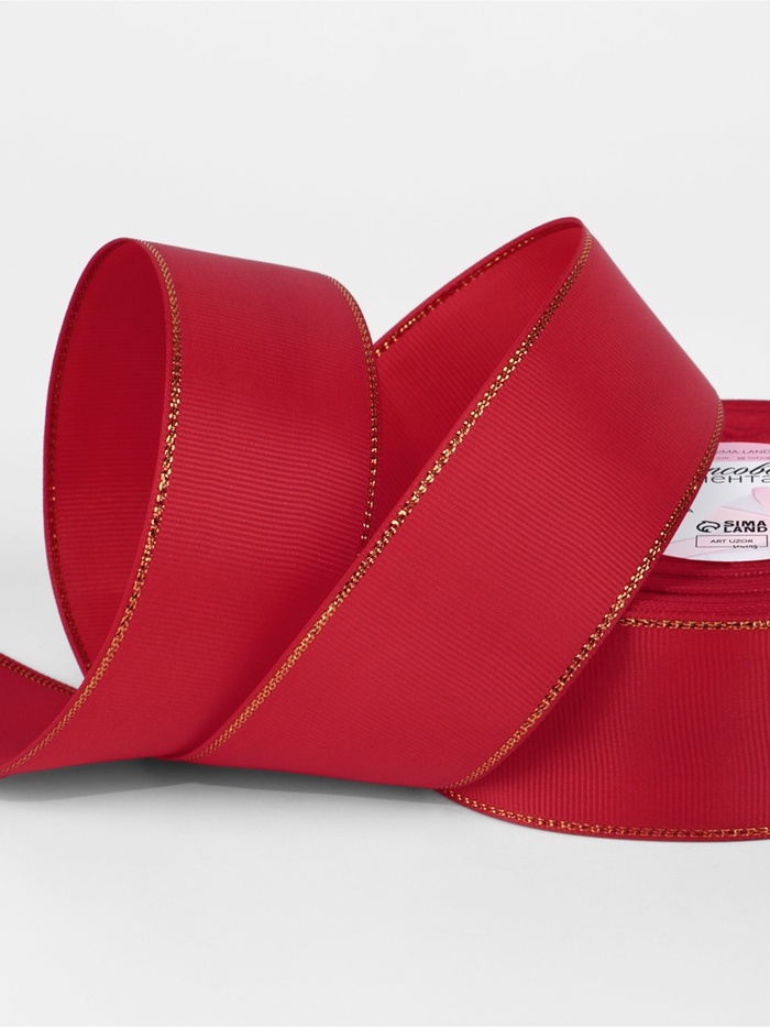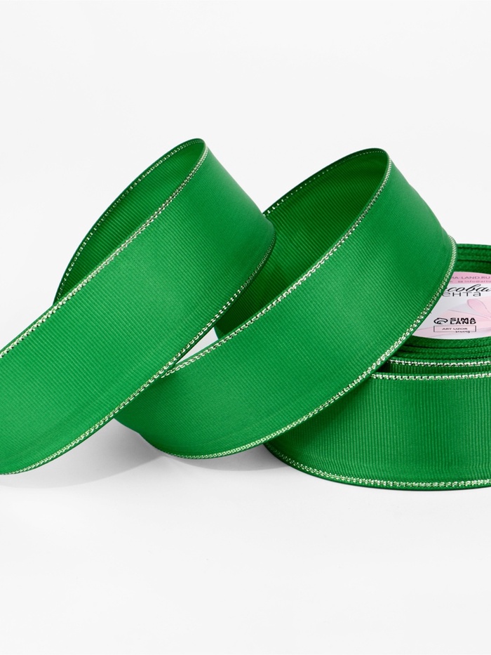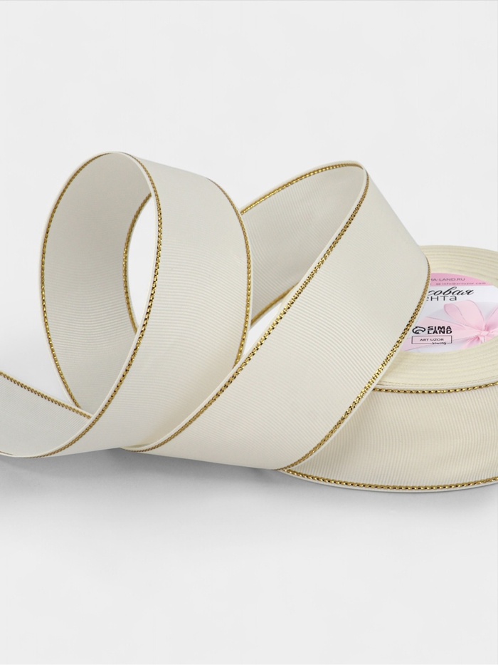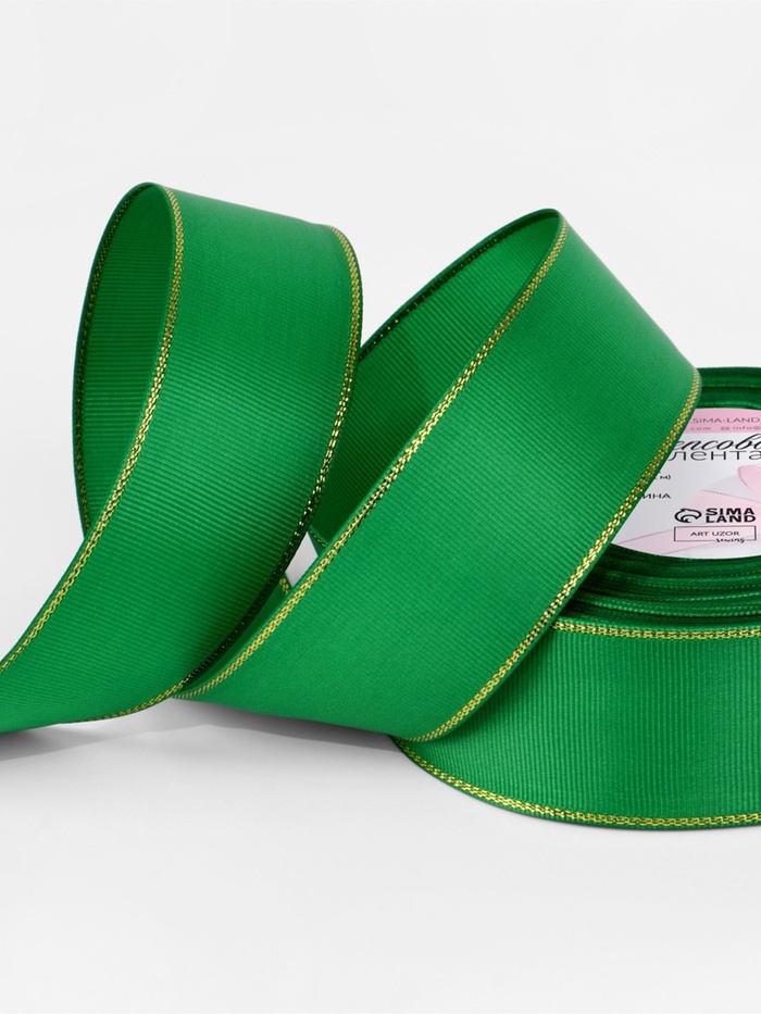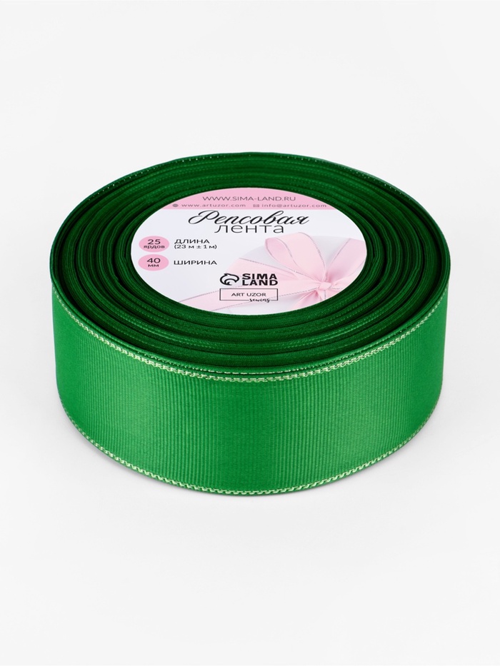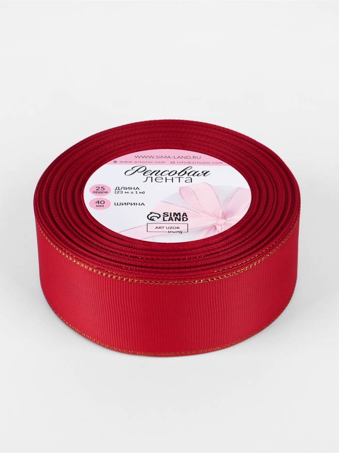 Лента репсовая, с золотым люрексом, 40 мм, 23±1 м, жёлтая 3 фото