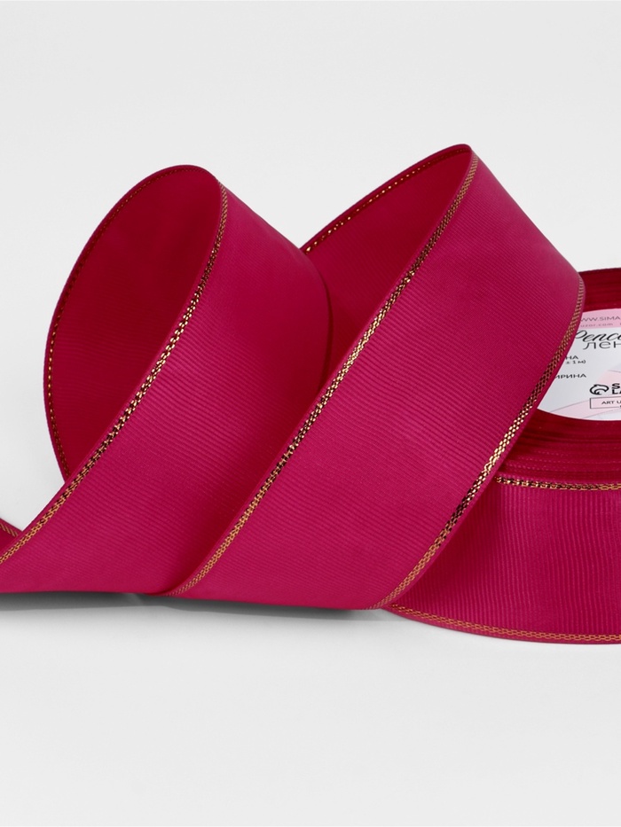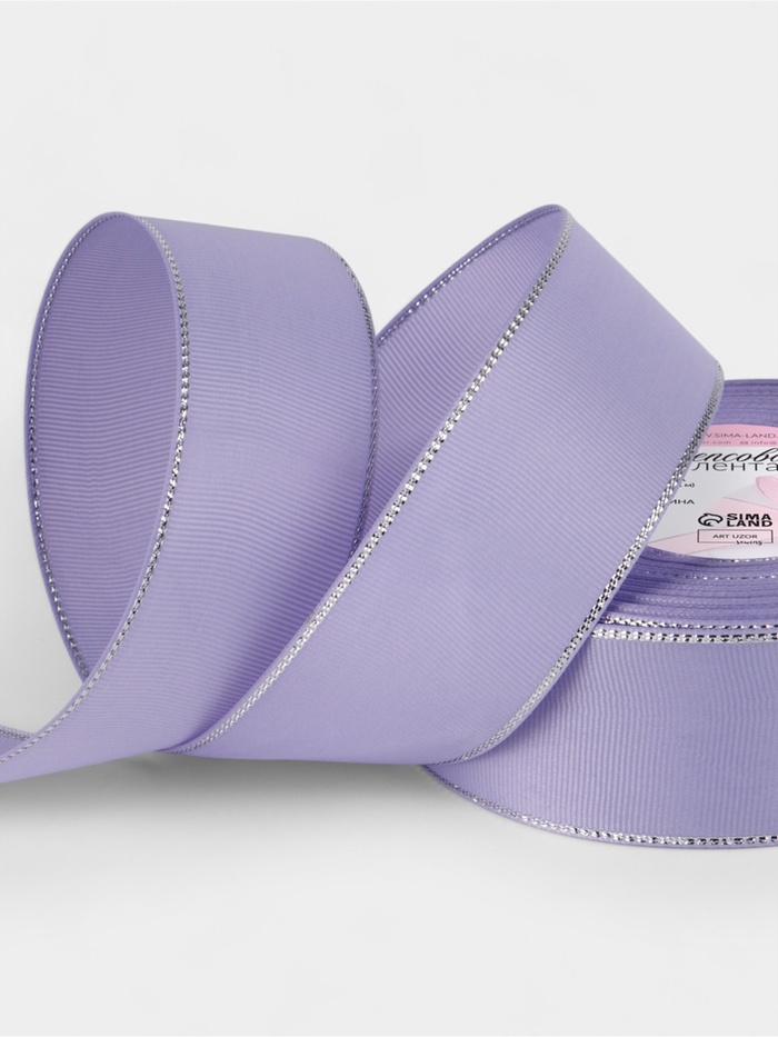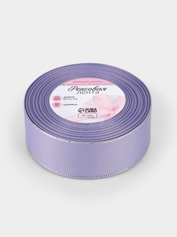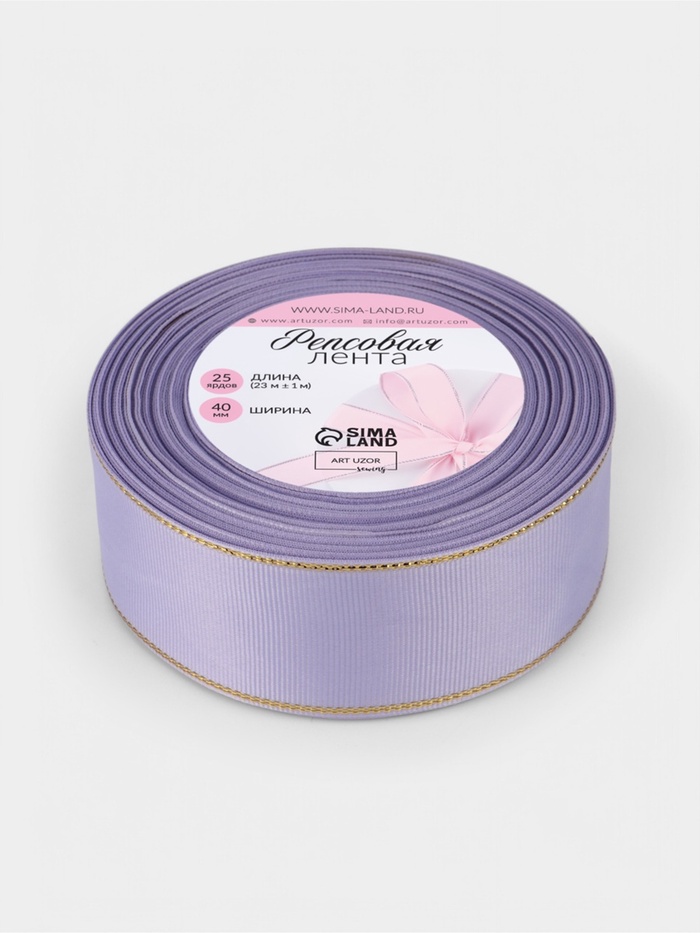 Лента репсовая, с золотым люрексом, 40 мм, 23±1 м, сиреневая №021 3 фото