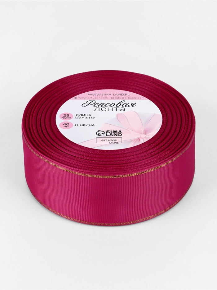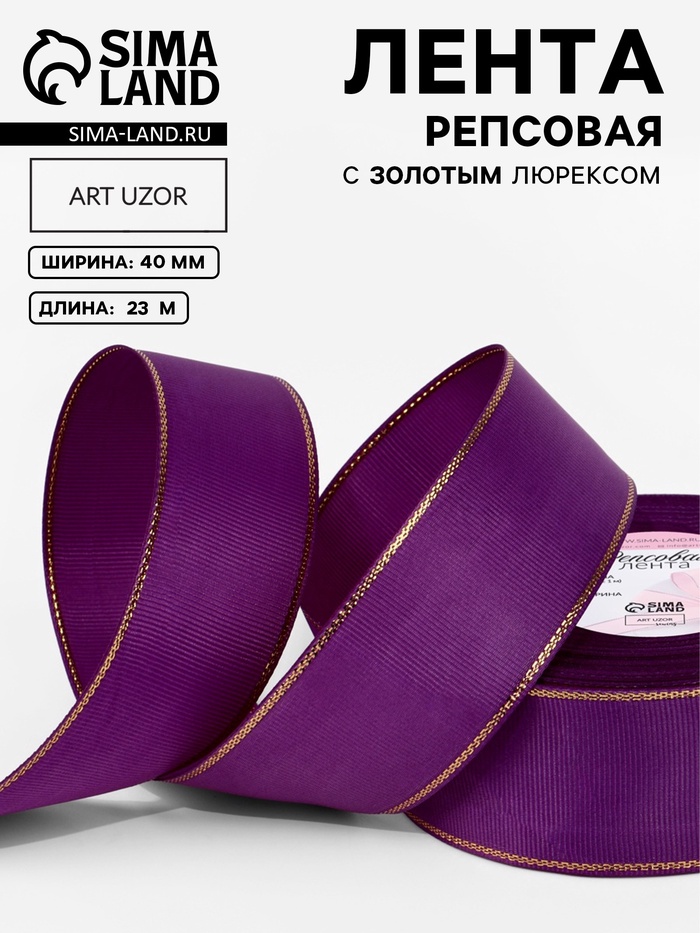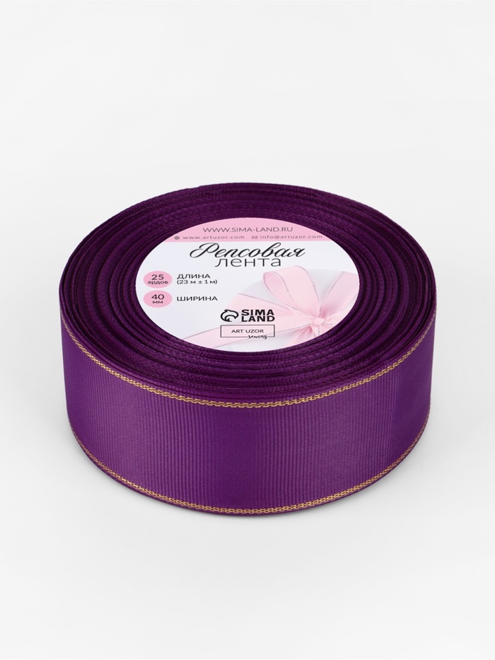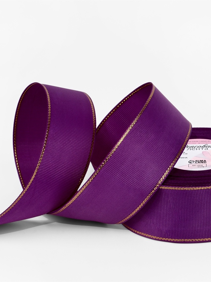 Лента репсовая, с золотым люрексом, 40 мм, 23±1 м, фиолетовая №046 3 фото