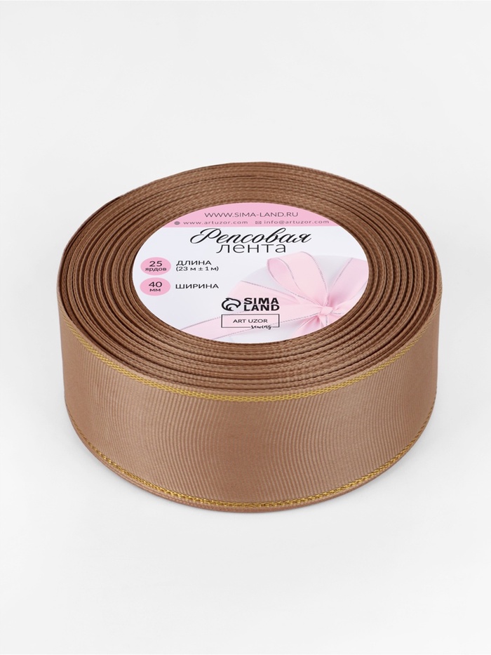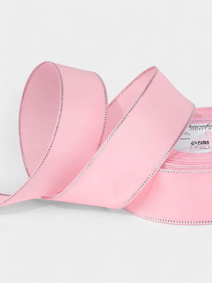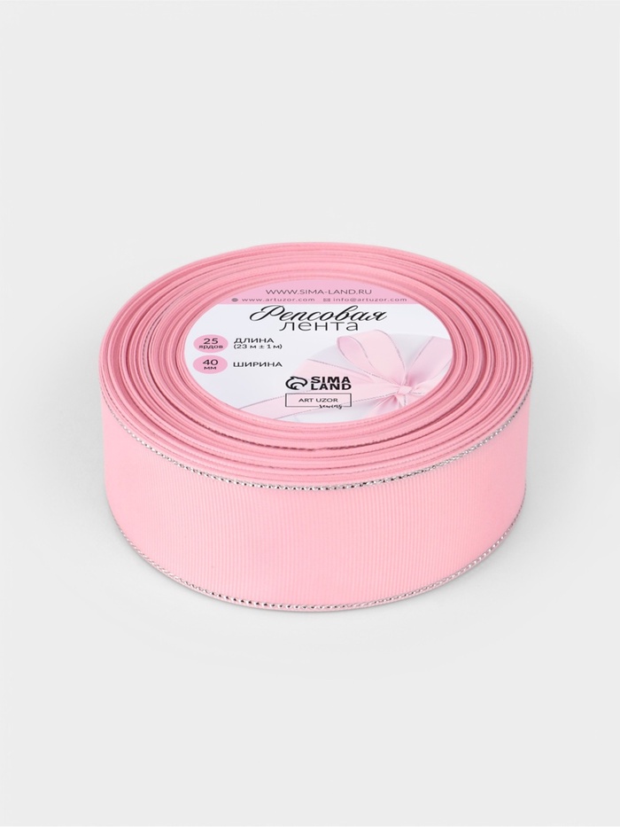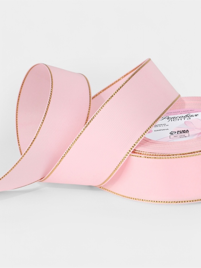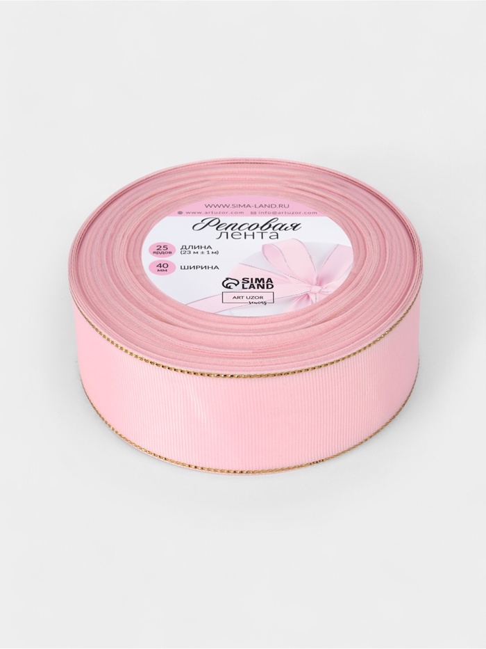 Лента репсовая, с золотым люрексом, 40 мм, 23±1 м, светло-розовая №004 3 фото