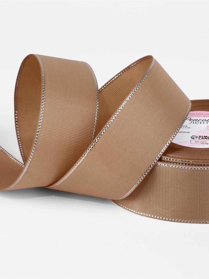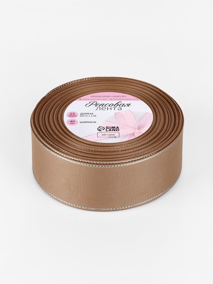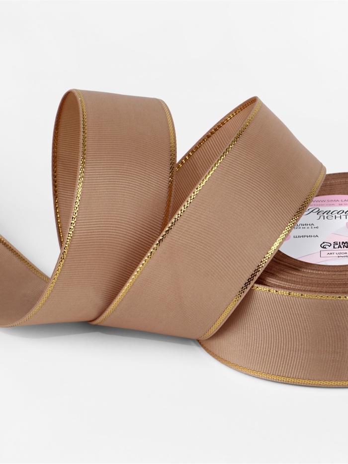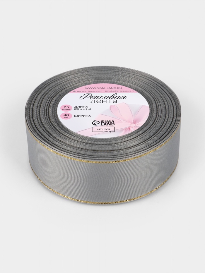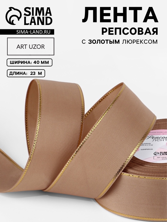 Лента репсовая, с золотым люрексом, 40 мм, 23±1 м, светло-розовая №004 3 фото