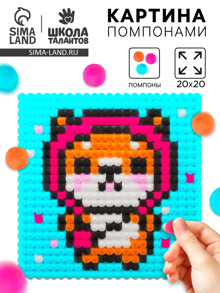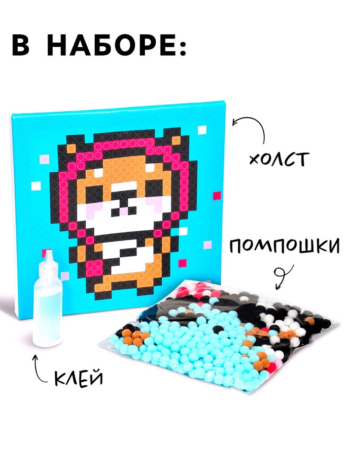 Картина помпошками на холсте «Корги», набор для творчества, своими руками, 3+ 4 фото