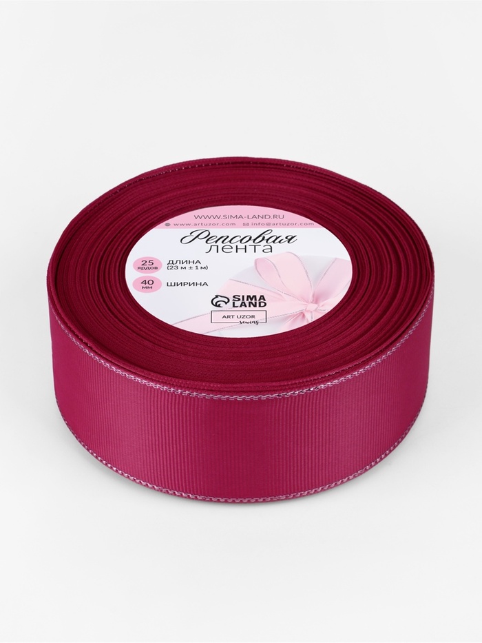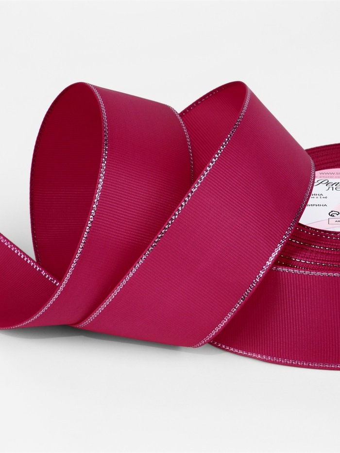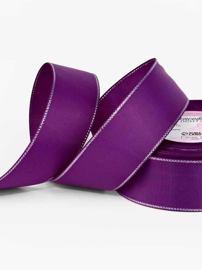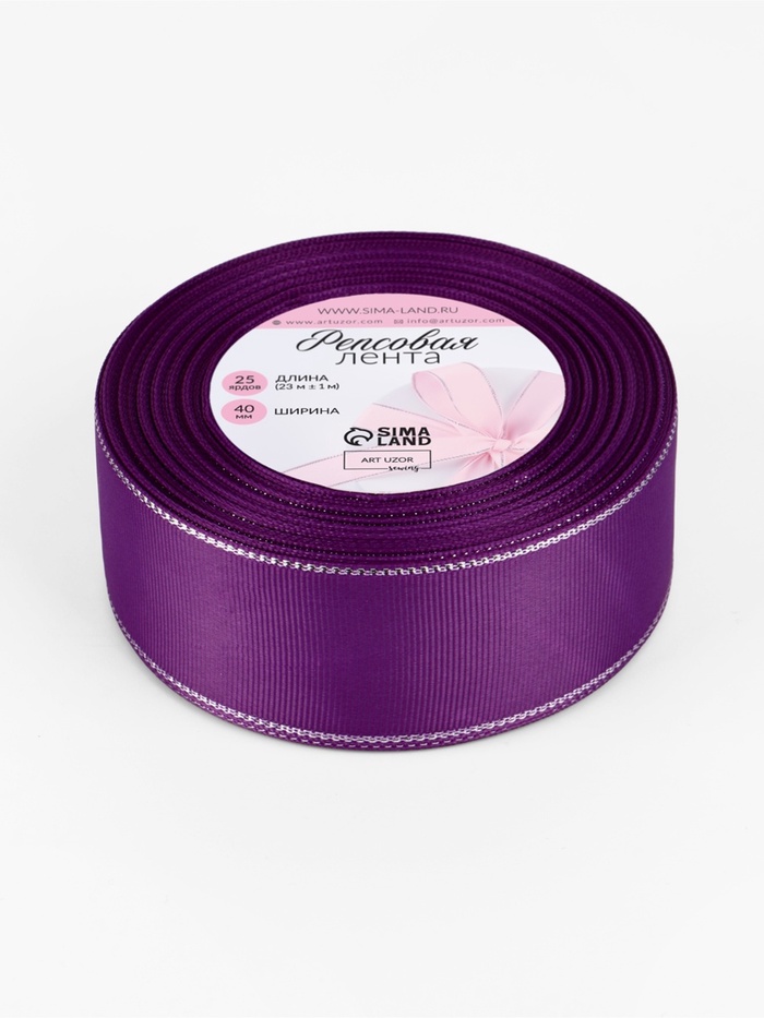 Лента репсовая, с серебряным люрексом, 40 мм, 23±1 м, фиолетовая №046 3 фото