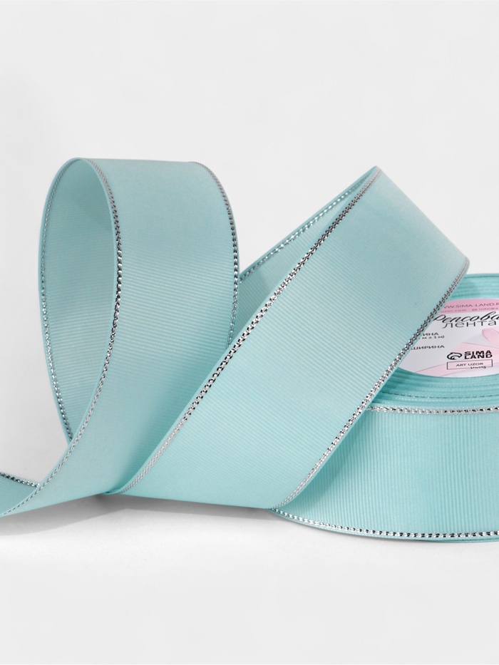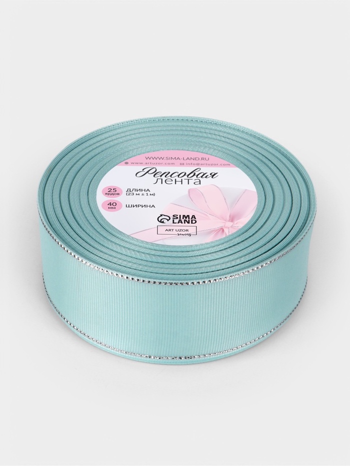 Лента репсовая, с серебряным люрексом, 40 мм, 23±1 м, светло-голубая №013 3 фото