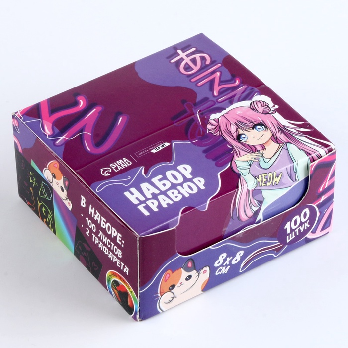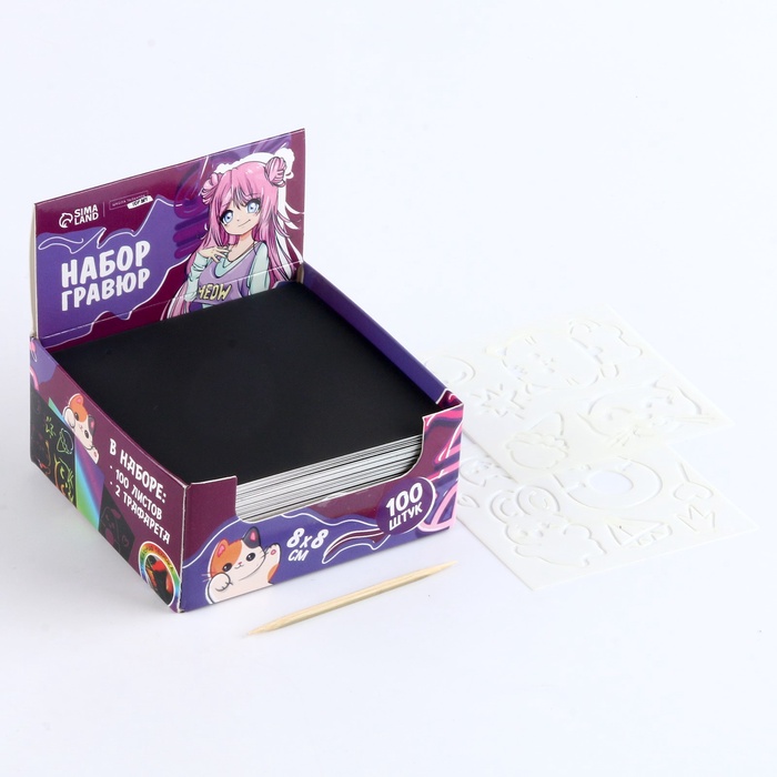 Гравюра детская «Мир аниме» с цветным эффектом, 100 шт., 8×8 см 6 фото