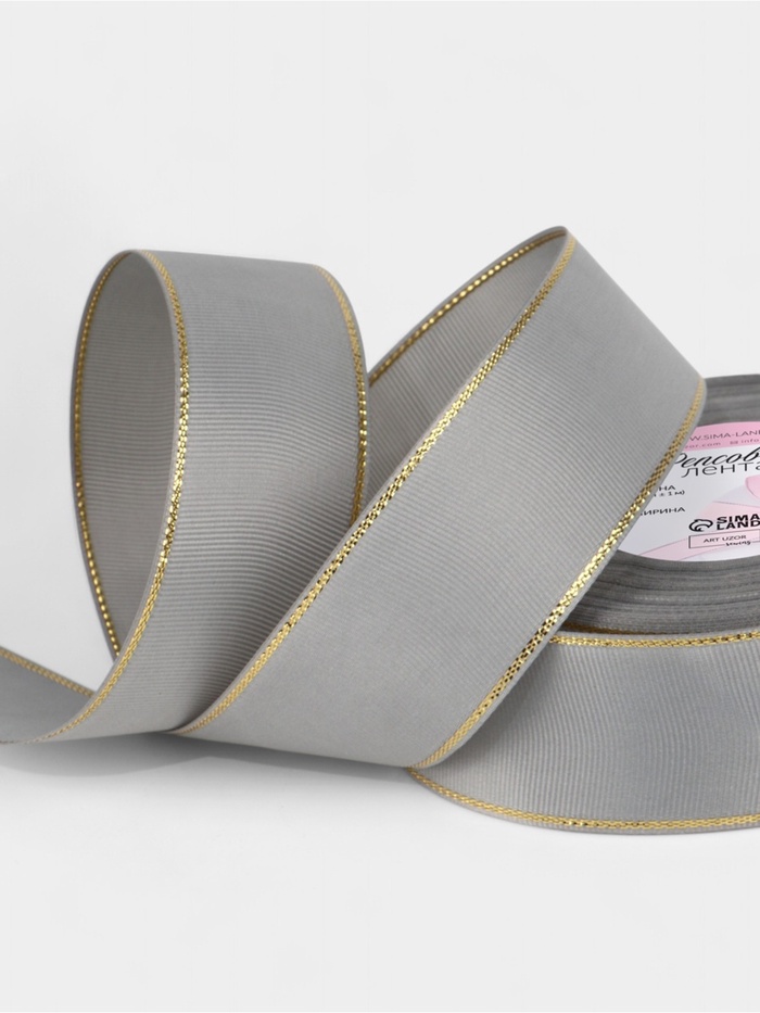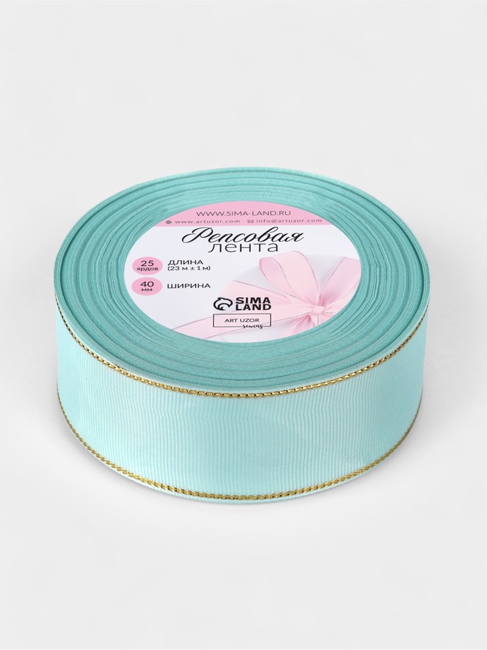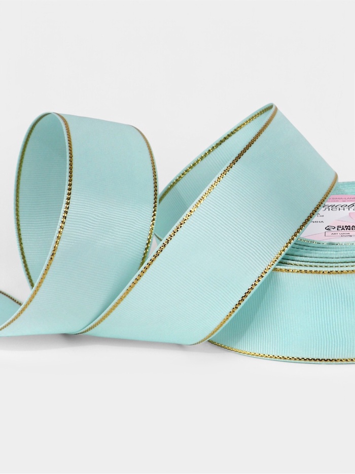 Лента репсовая, с золотым люрексом, 40 мм, 23±1 м, светло-голубая №013 3 фото