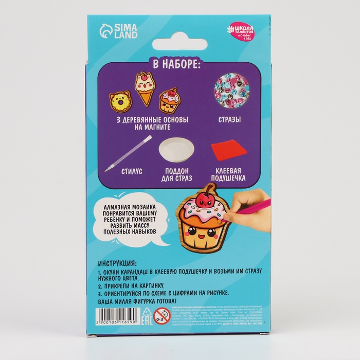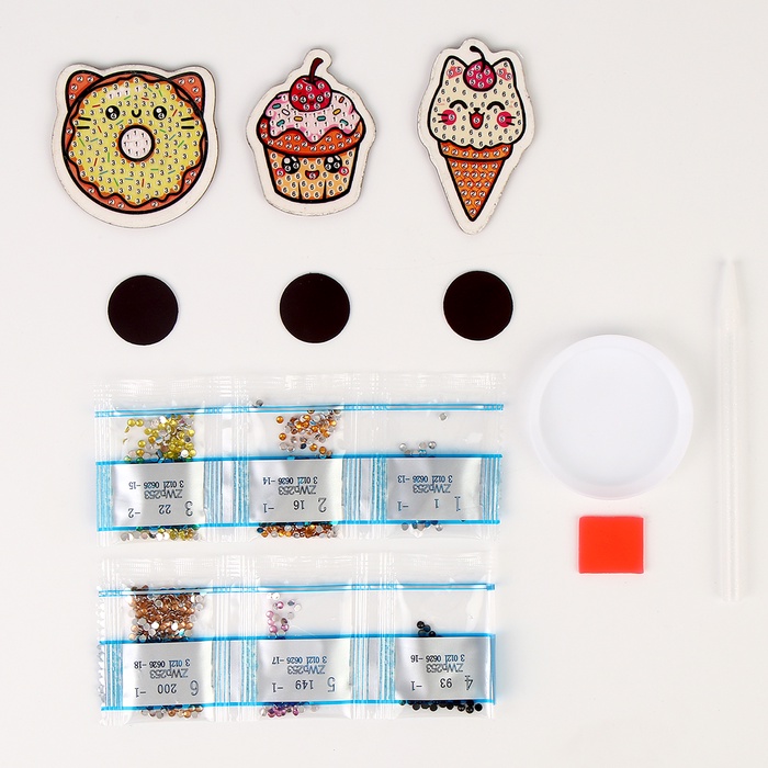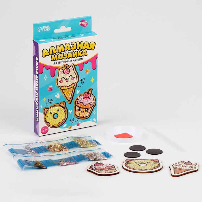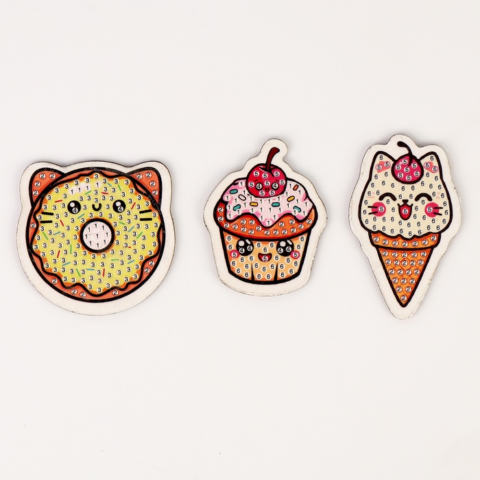 Алмазная мозаика на деревянном магните для детей «Сладости», набор для творчества 7 фото
