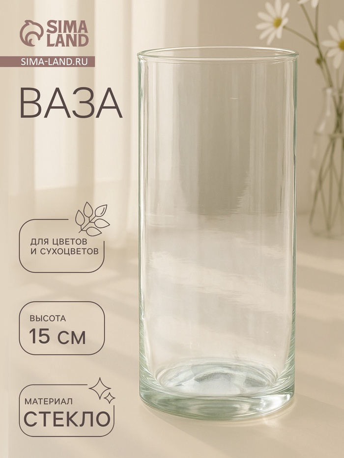 Ваза «Ротонда-3», 430 мл, 15×6.5 см, стекло, прозрачная 3 фото