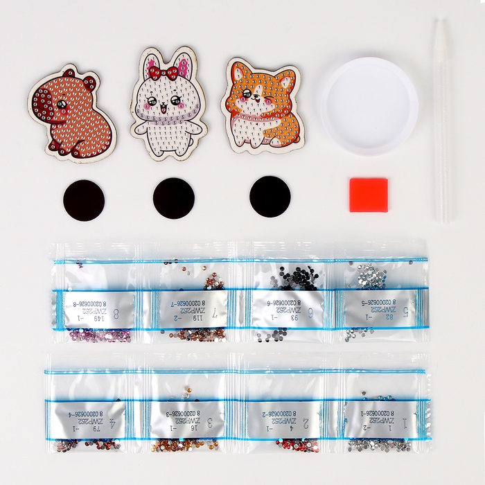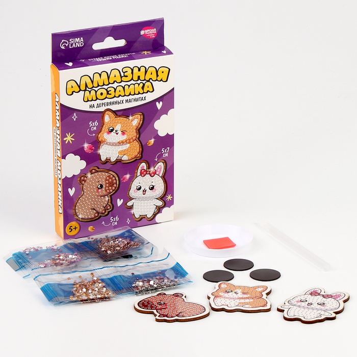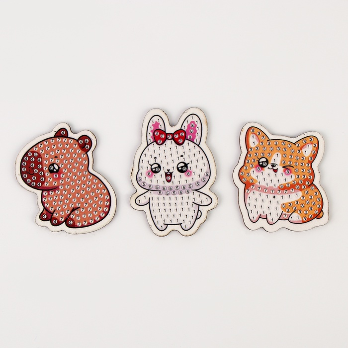 Алмазная мозаика на деревянном магните для детей «Милые зверюшки», набор для творчества 7 фото