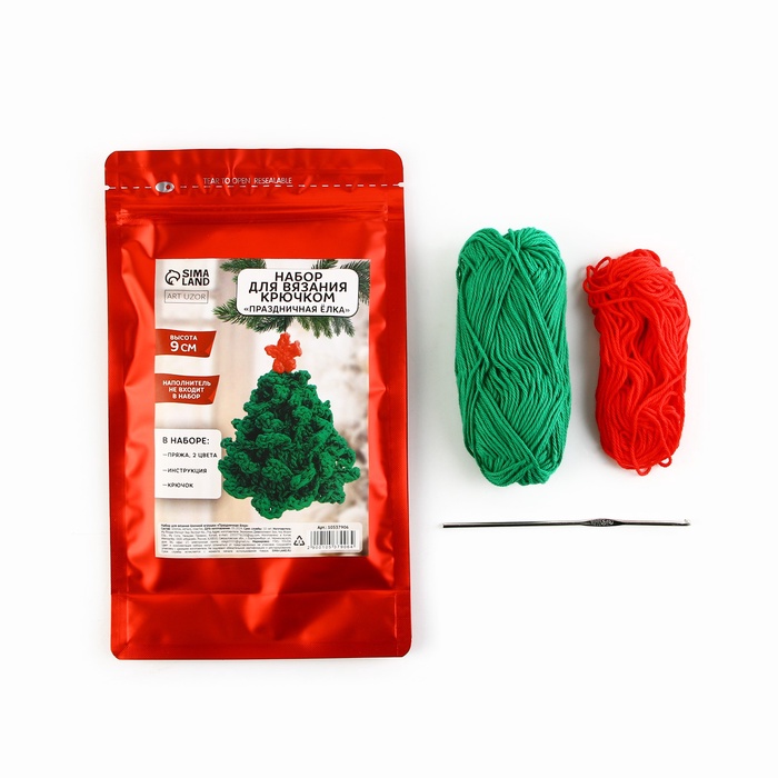 Ёлочная игрушка на новый год своими руками. Набор для вязания «Праздничная ёлка», 9 см, новогодний набор для творчества 7 фото