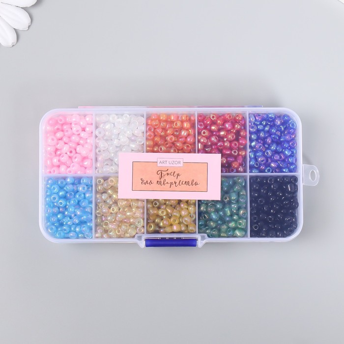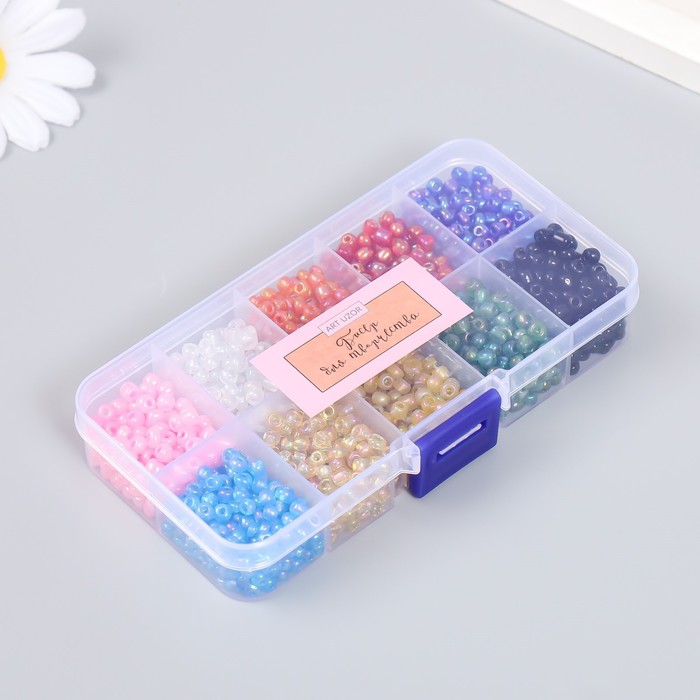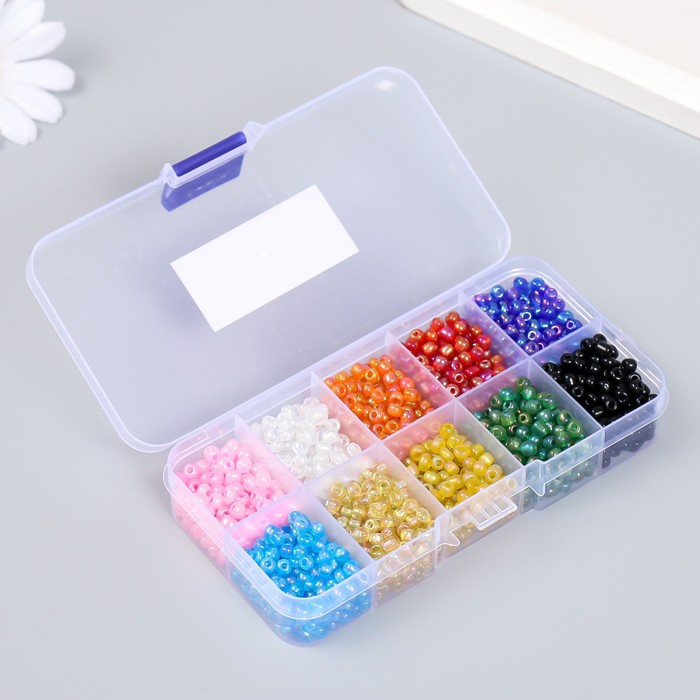 Бисер стекло 6/0 в шкатулке 10 делений «Разноцветный», 1 деление=10 г, 12.8×6.5×2.2 см 4 фото
