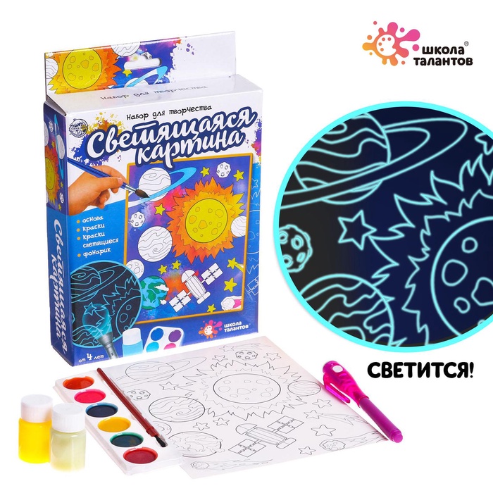 УЦЕНКА ШКОЛА ТАЛАНТОВ Набор для творчества Светящиеся картины, космос 8 фото