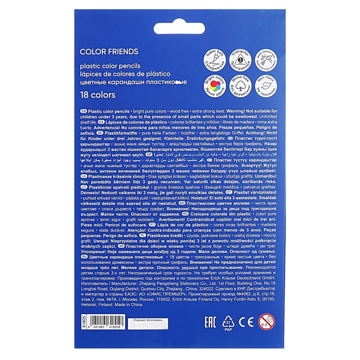 Карандаши 18 цветов ErichKrause Color Friends, трехгранные, пластиковые, МИКС 5 фото