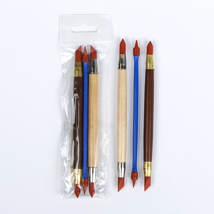 Набор кистей для рисования, 3 штуки, круглые, двусторонние, резиновые 5 фото