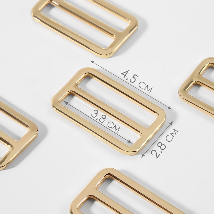 Пряжка регулирующая, двухщелевая, вн. ширина=38 мм, s=3.5 мм, 5 шт., цвет золотой 3 фото