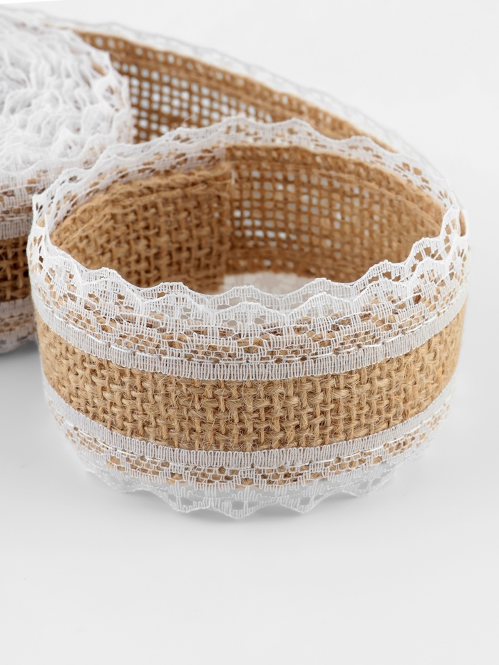 Лента холщовая «Кружево», натуральная, 37 мм, 4.5±0.5 м, белая 5 фото