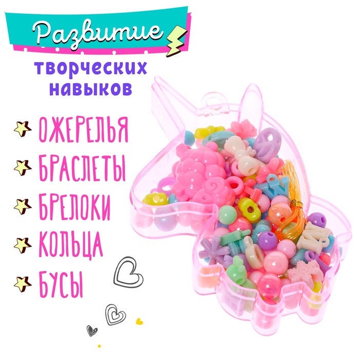 Набор бусин для творчества и рукоделия «Милый единорог», в контейнере - органайзере, создание украшений и плетение своими руками, МИКС 6 фото